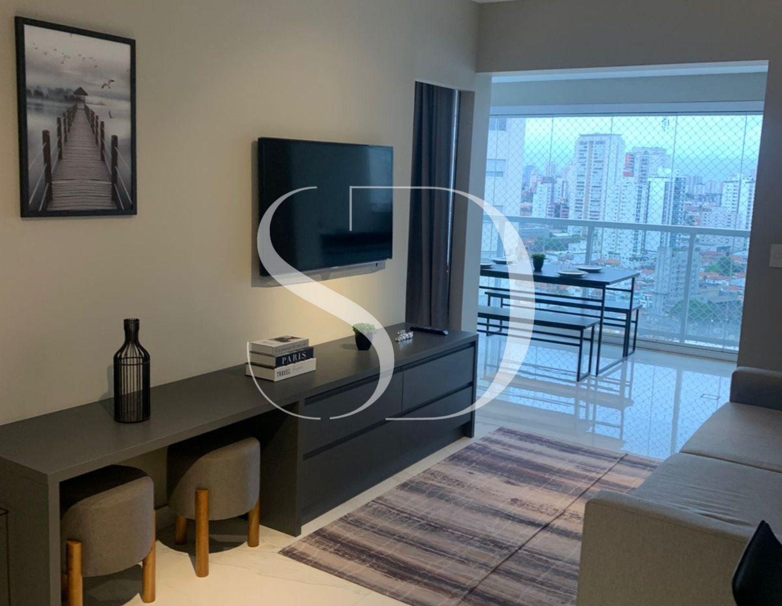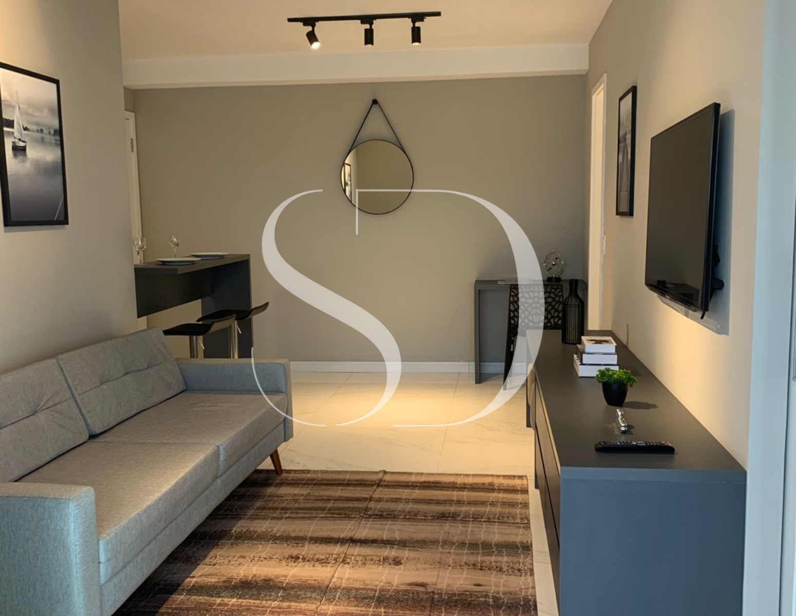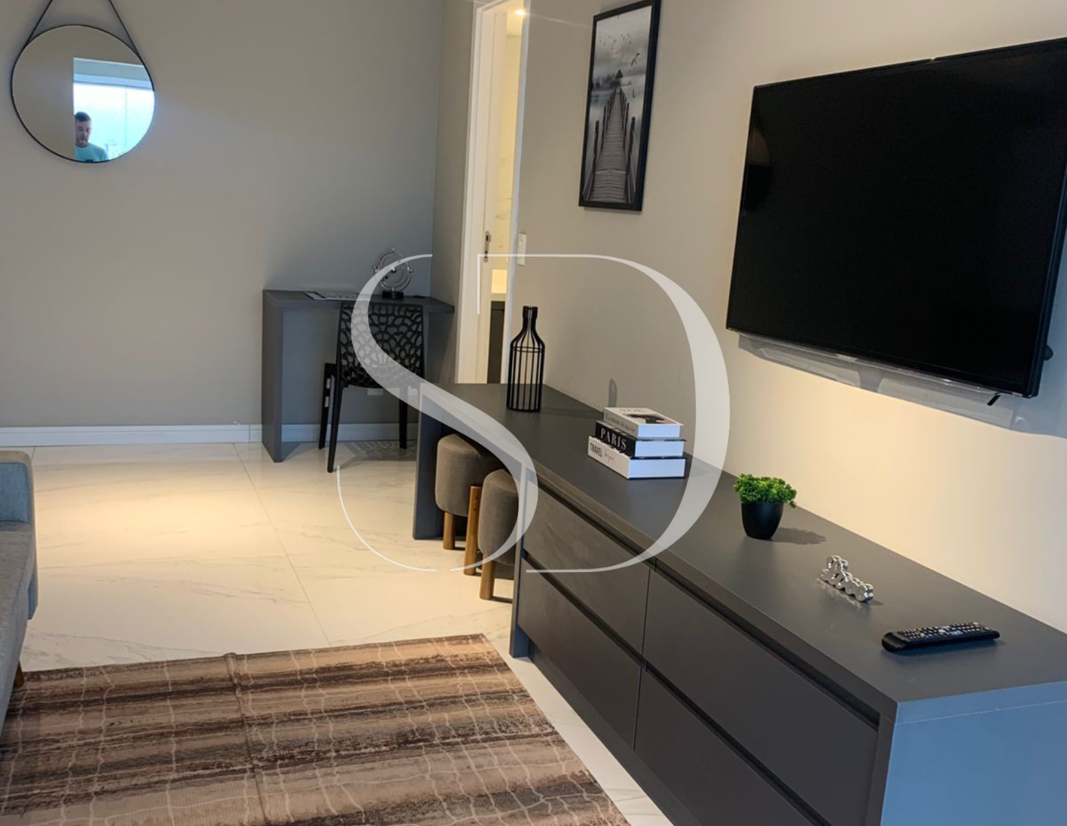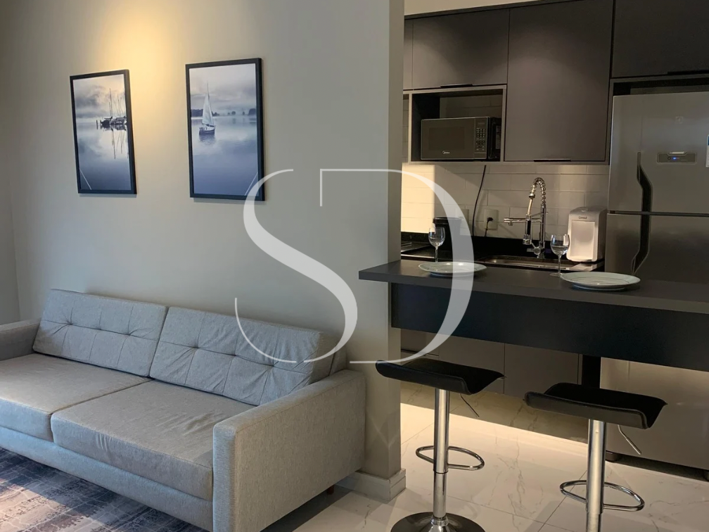 O apartamento possui 52m, planta tipo studio com ambientes integrados e uma excelente varanda.