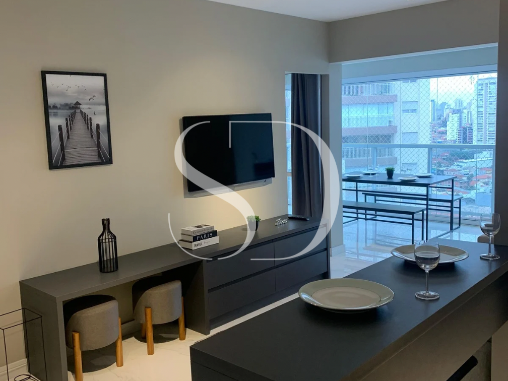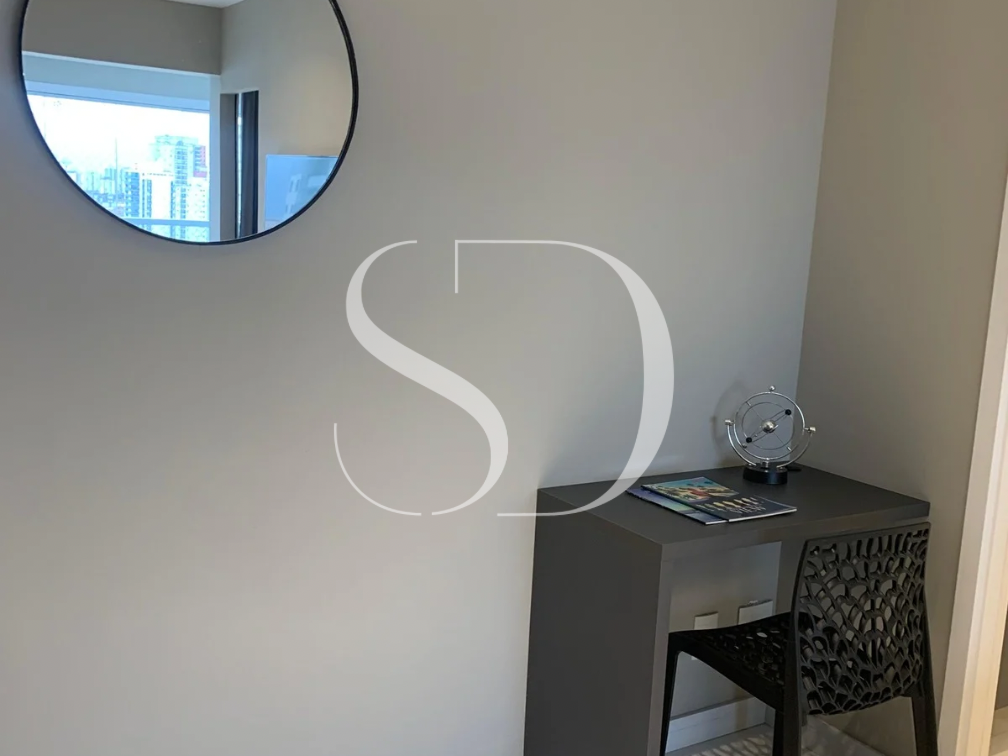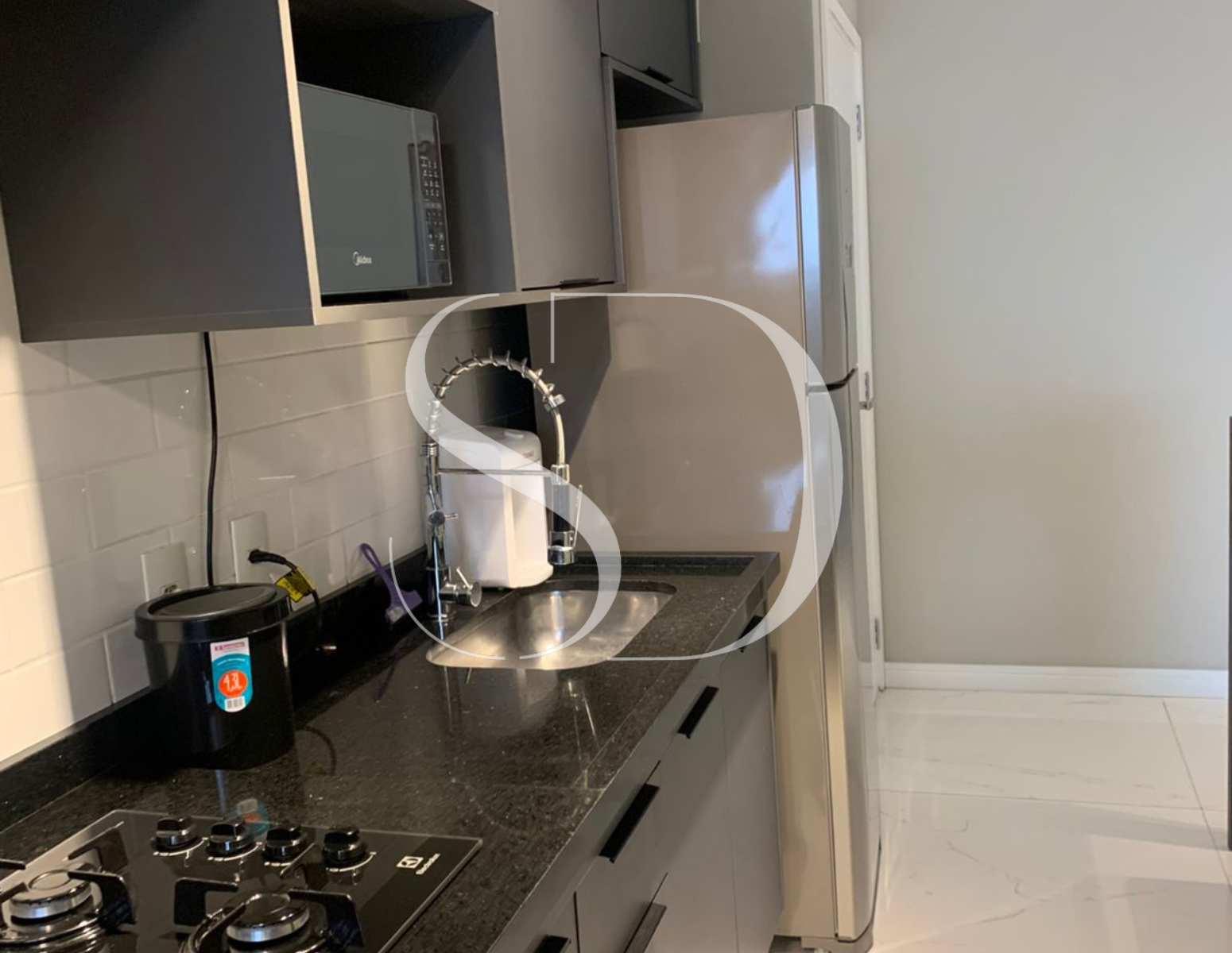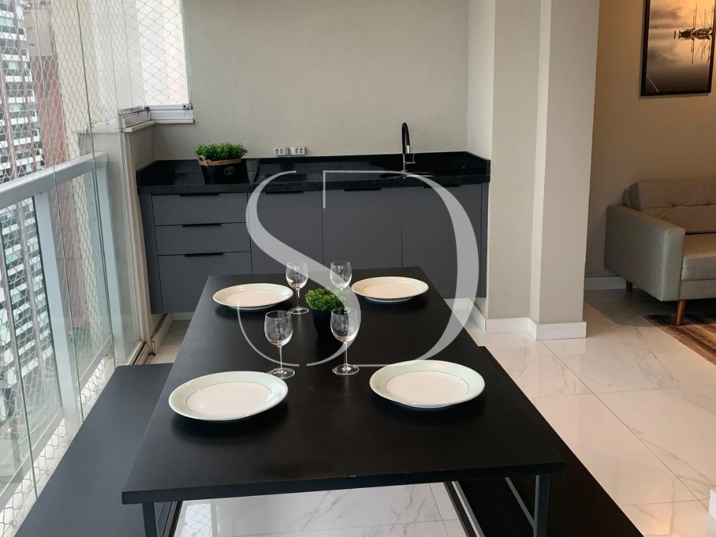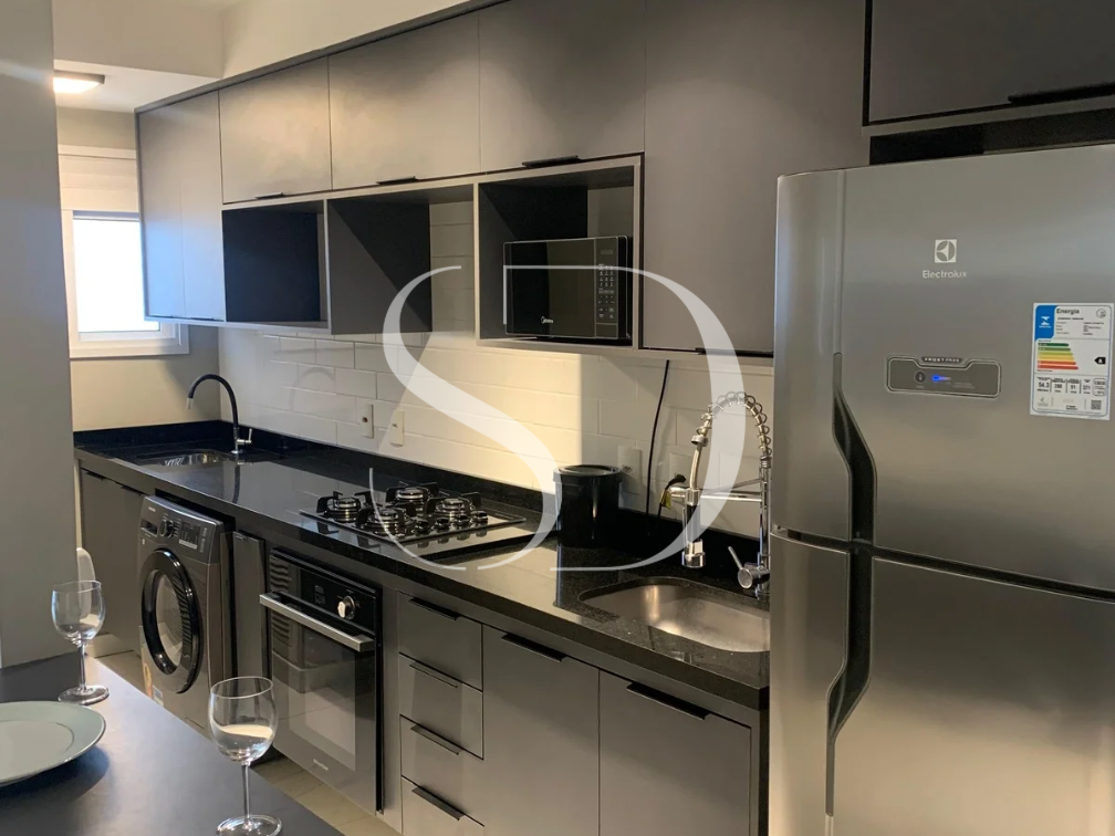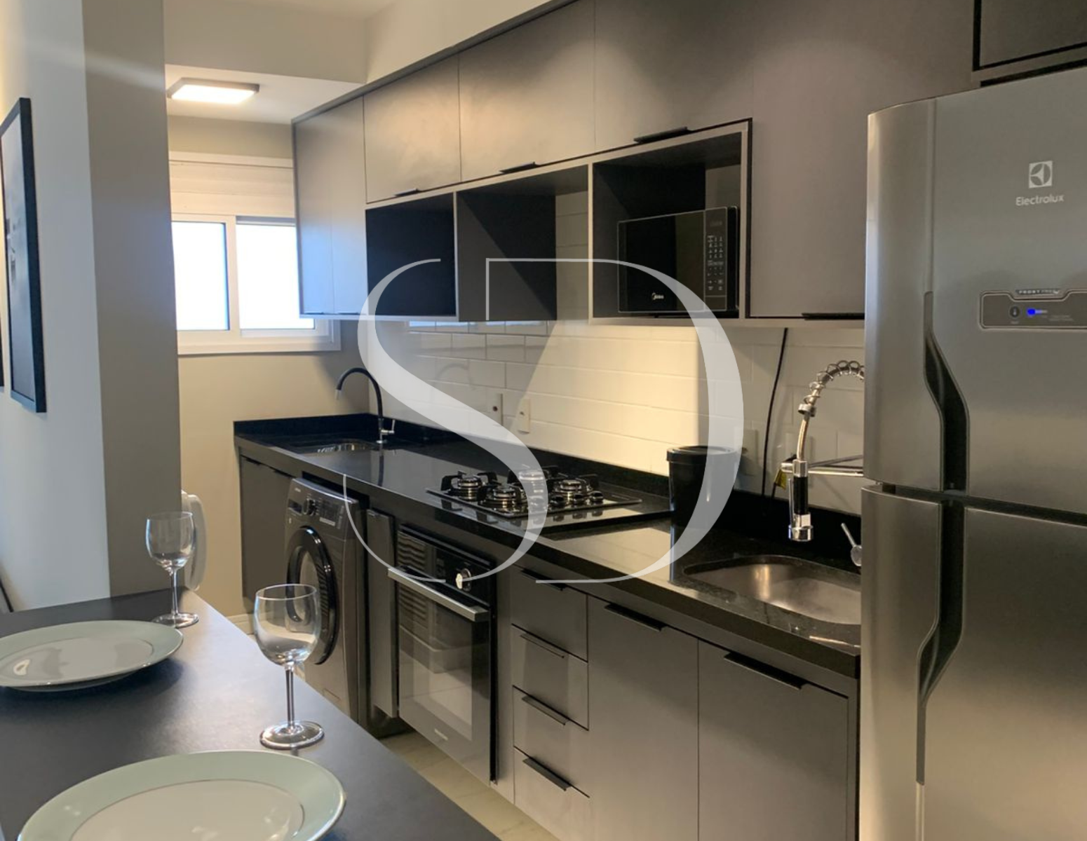 Incluso ar condicionado, fogão cooktop, microondas, forno, geladeira, filtro de agua, maquina de lavar e secar roupas, TV, sofá, banquetas, puff, quadros, mesa de jantar, cadeiras, bancada de escritório ou estudos, cama, luminárias, armários no quarto, na cozinha, na lavanderia, no banheiro e na sacada.