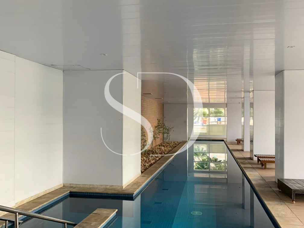 Condominio oferece lazer com piscina aquecida e coberta, piscina externa, academia, sauna, salão de festas, e muito mais.