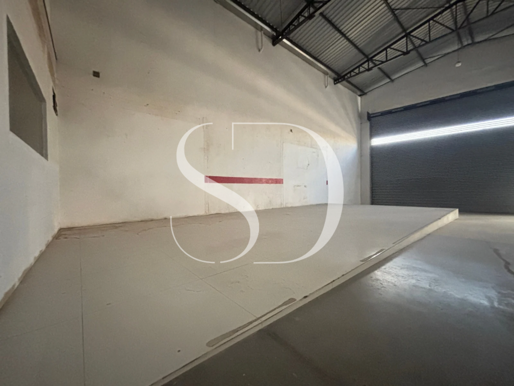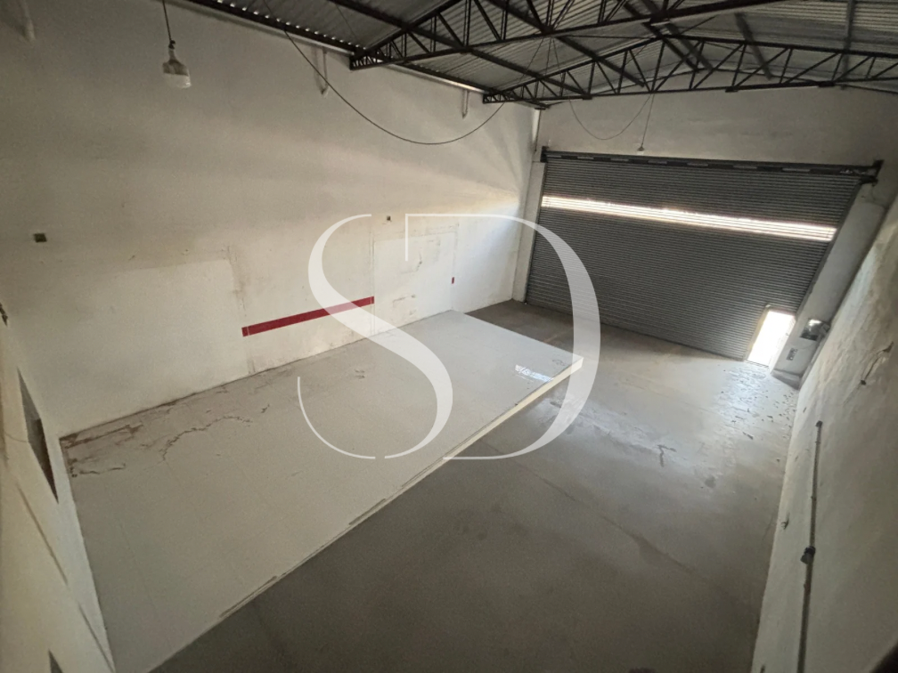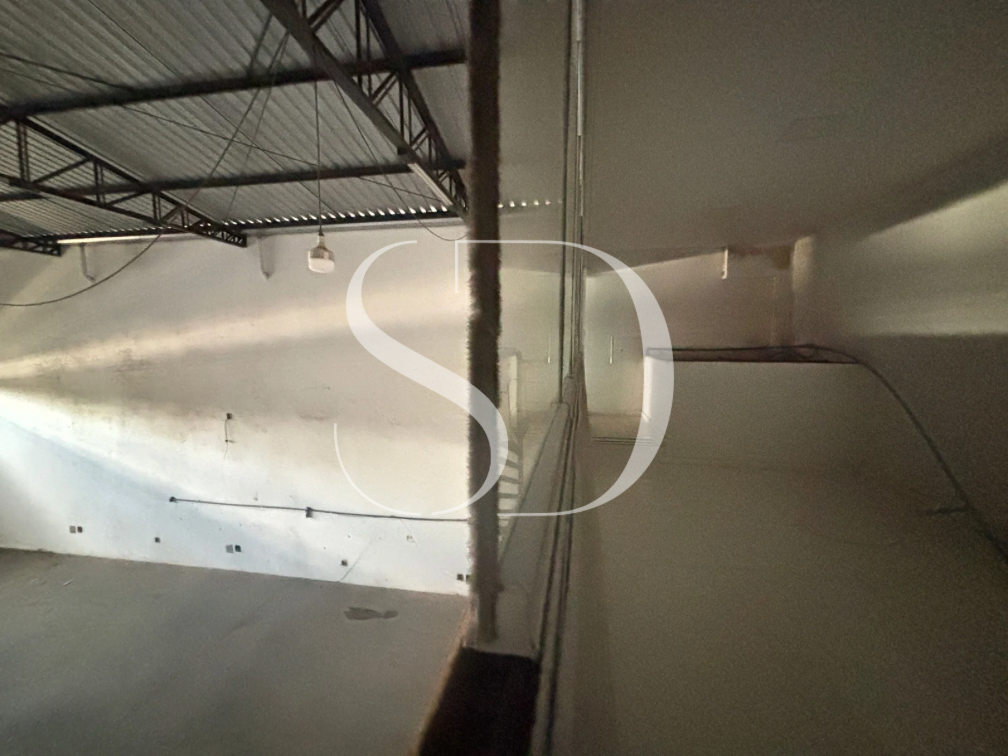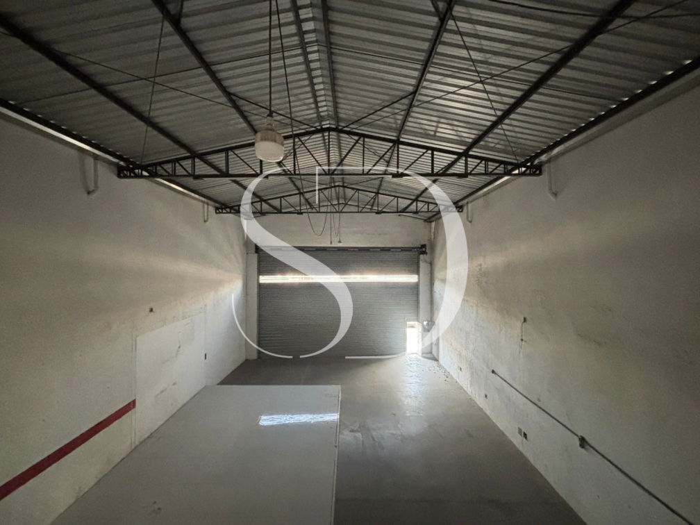 Galpão com portão com +-5M, pé direito de +- 6M.