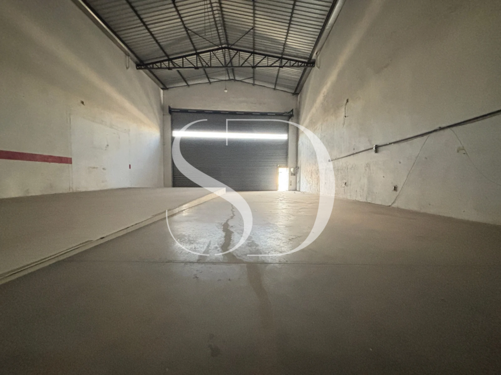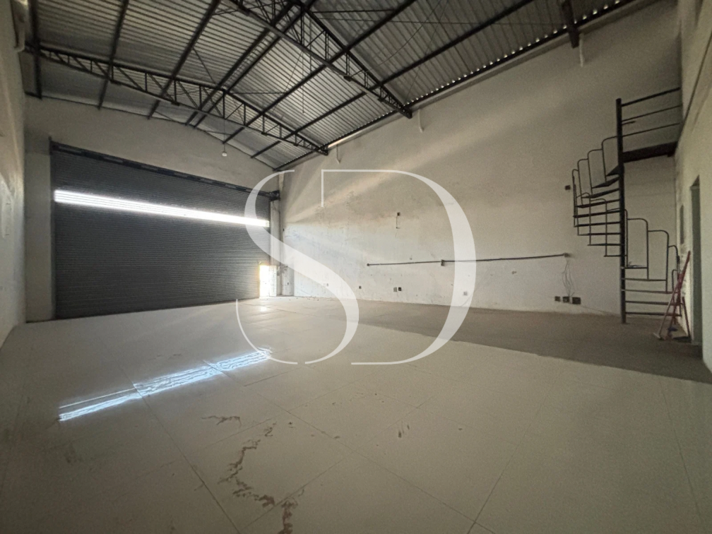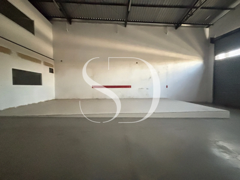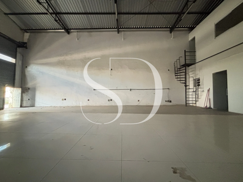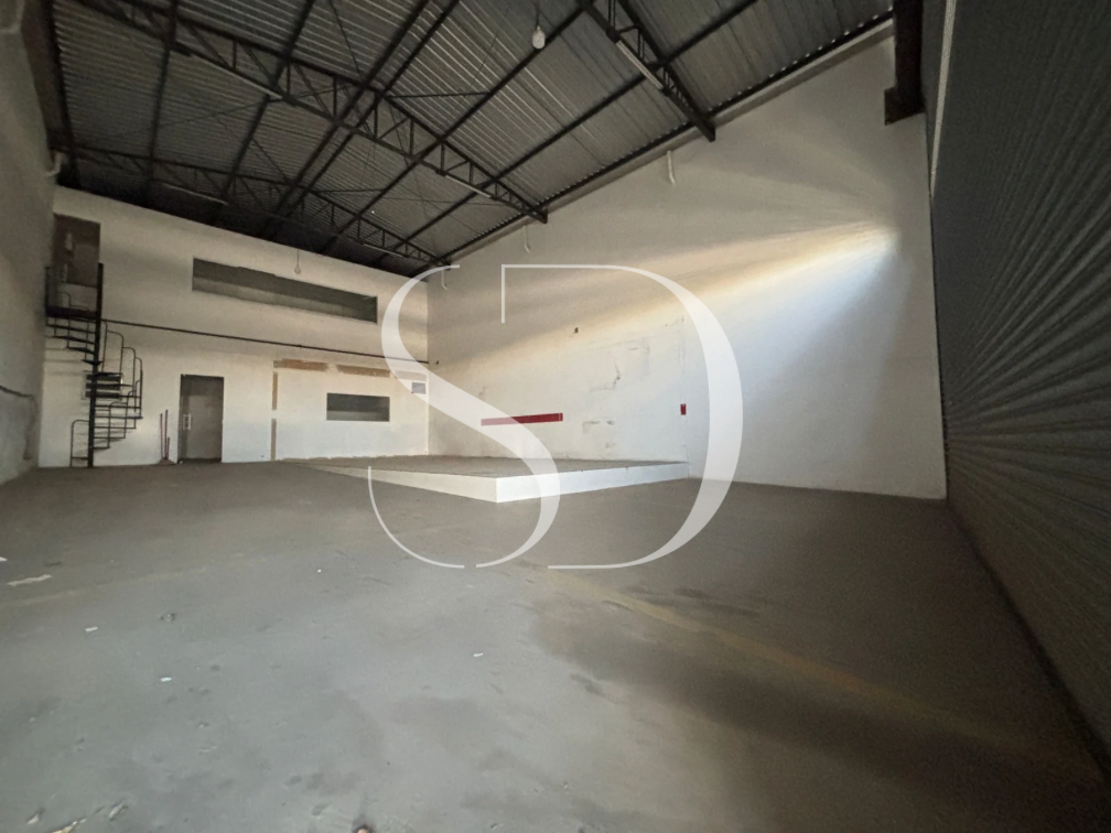 Galpão com portão com +-5M, pé direito de +- 6M.