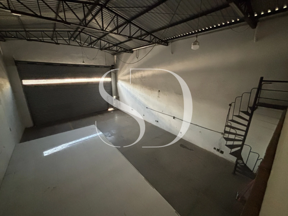 Mezanino com 1 escritório com fechamento de vidro retratil.