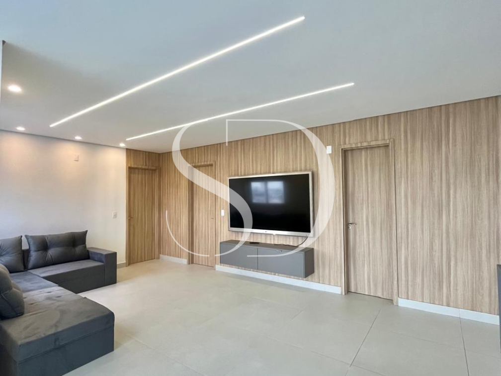 Piso em porcelanato de primeira linha, teto rebaixado com gesso e iluminação de led embutida muito moderna.