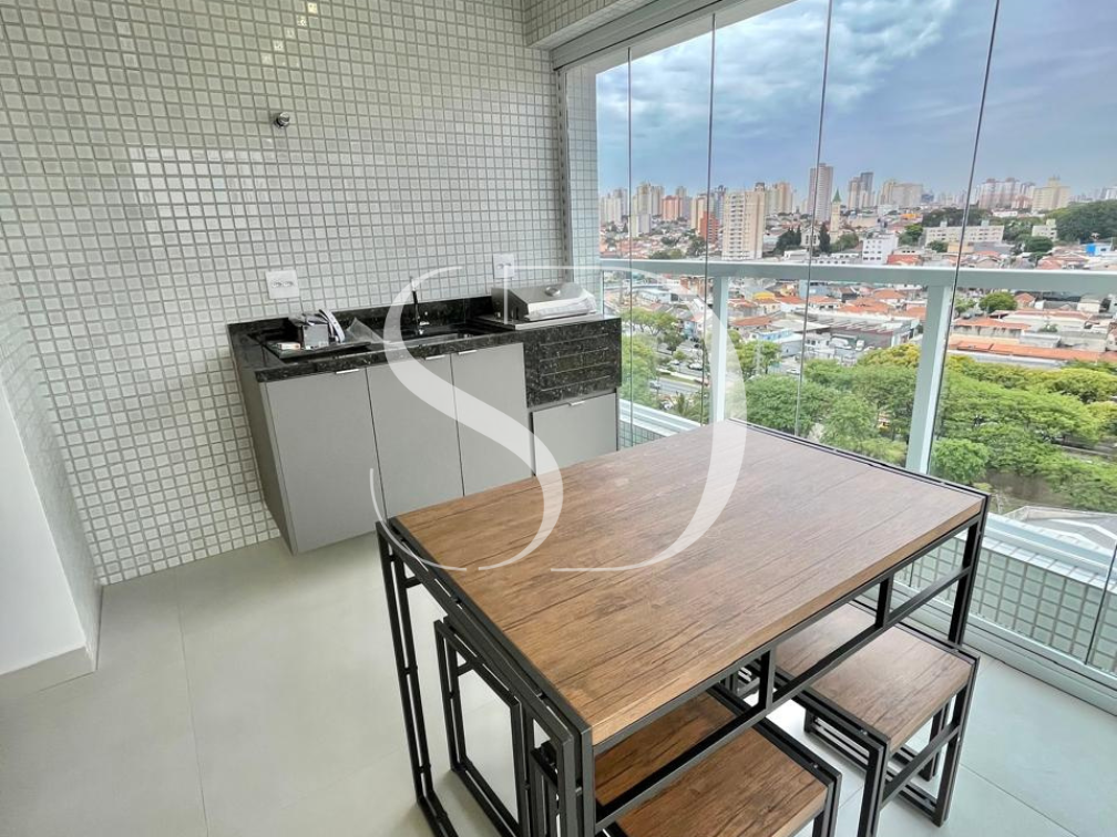 Apartamento novo com varanda gourmet, totalmente mobiliado para alugar no Tatuapé, em andar alto, com linda vista da cidade.