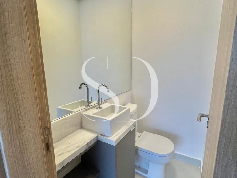 Todos os banheiros com gainete na pia, espelho e box de vidro.